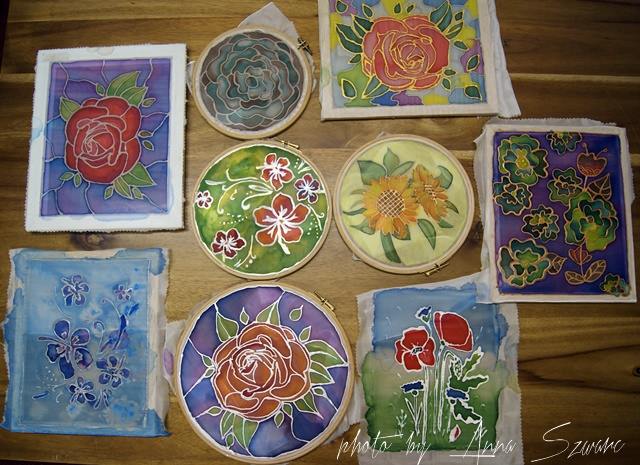 kotbury. Ania pokazała nam jak krok po kroku ozdobić biały jedwab w dowolnie wybrane wzory i kolory.
